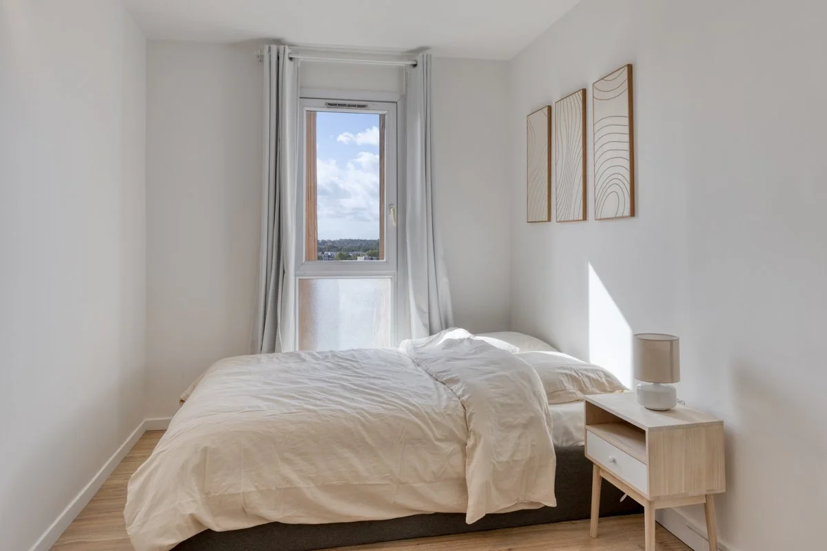 À Thiais, cet appartement de 78 m² situé au 8ᵉ étage a fait l’objet d’une rénovation complète avec un objectif clair : le transformer en un lieu de vie moderne et fonctionnel, parfaitement adapté à la colocation. Initialement configuré en T4, il a été repensé en T5 grâce à la création d’une chambre supplémentaire et à l’ajout d’une salle de bain, permettant ainsi d’accueillir quatre colocataires dans les meilleures conditions.