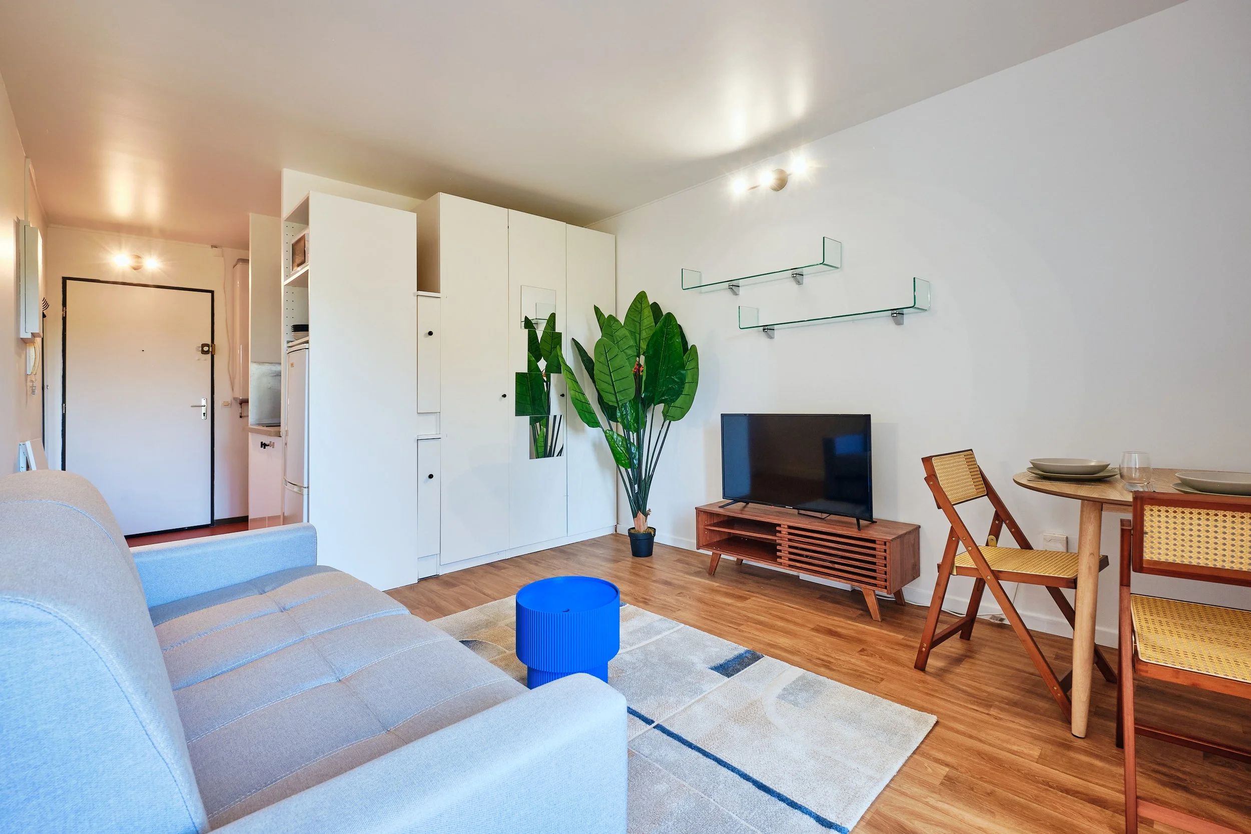 Le résultat est un studio optimisé, lumineux et accueillant, où chaque élément a été pensé pour offrir confort, fonctionnalité et style malgré une surface réduite. Un exemple concret de la manière dont un aménagement réfléchi peut transformer un petit espace en un lieu agréable à vivre.